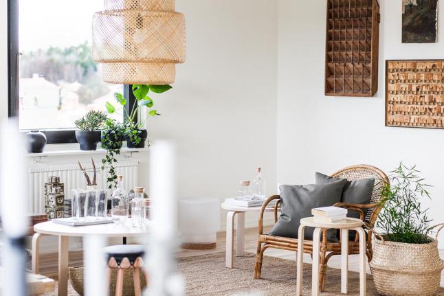 Y es que como veis está decorada en tonos naturales y además llena de tejidos y elementos que también lo son, mimbre, ratán, hilo, y plantas, muchas plantas que de paso le aportan un toque fresco y de color. A veces agradezco las viviendas relajadas y sencillas como esta, ¿qué os parece a vosotros?